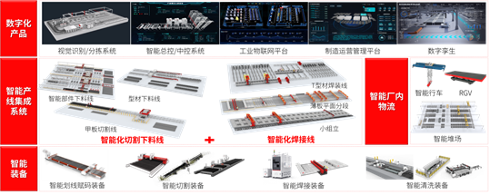 近年來,面對船舶工業轉型升級的趨勢,華工科技直擊船舶行業痛點,自主研發了高端激光切割裝備、板件賦碼裝備、激光復合焊裝備和行業數字化產品,并以自主裝備+自主軟件為核心,根據船舶制造企業個性化需求為其打造客制化方案,包含部件切割線、甲板切割線、型材切割線、薄板平面片體生產線、小組立生產線、T型材生產線等多種產線,并結合公司自主研發的基于AI算法的3D視覺識別分揀控制系統、智能總控/中控系統、數字孿生系統、工業物聯網平臺、制造運營管理系統等數字化產品打通生產全流程的數據和業務,將各種船體結構部件生產流程的局部效率提升轉變為整體生產過程的協同和優化,攜手船舶企業共塑新質生產力。