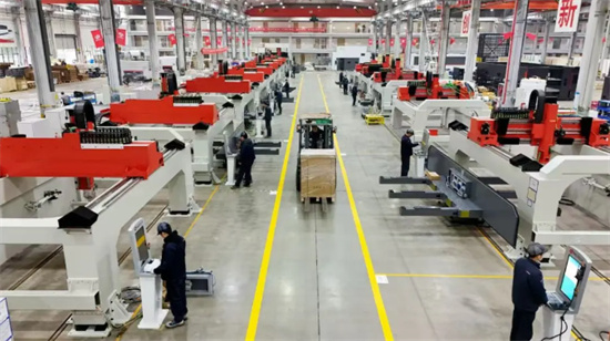 2025年央視春晚上,宇樹人形機器人扭著憨態可掬的機械秧歌,受到全國觀眾的喜愛。而就在離我們武漢分會場不遠的光谷工廠里,也有一隊機械舞者,它們舞步如疾速流光,能在鋼鐵上跳一曲“激光霹靂”。這就是我們的第五代三維五軸激光切割智能裝備。